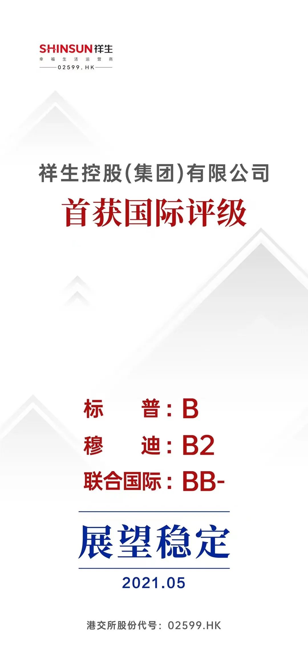 在業務規模穩健增長、經營情況持續向好的背景下,祥生控股集團于3月獲得建銀國際、招銀國際等券商給予的“買入”評級。5月上旬,穆迪、標普、聯合國際三家國際評級機構亦正式發布對祥生控股集團的長期主體信用評級結果——穆迪授予B2評級、標普授予B評級、聯合國際授予BB-評級,評級展望“穩定”。