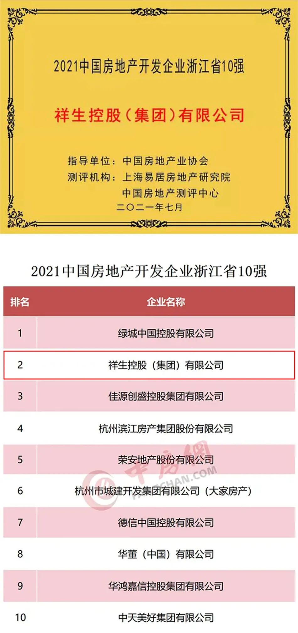 7月5日,上海易居房地產(chǎn)研究院中國(guó)房地產(chǎn)測(cè)評(píng)中心正式發(fā)布「2021中國(guó)房地產(chǎn)開(kāi)發(fā)企業(yè)華東、華中區(qū)域測(cè)評(píng)研究成果」,祥生控股(集團(tuán))有限公司憑借扎實(shí)穩(wěn)重的投資戰(zhàn)略和不斷提升的產(chǎn)品服務(wù)榮獲“2021中國(guó)房地產(chǎn)開(kāi)發(fā)企業(yè)浙江省TOP2”。