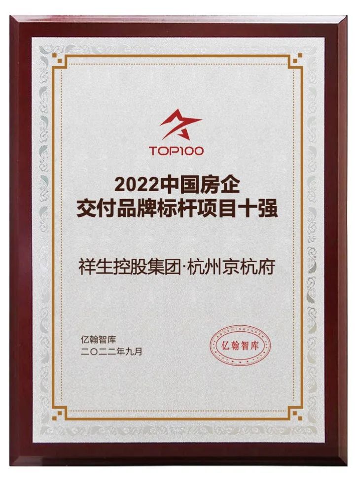 基于自身的長期穩(wěn)健發(fā)展及品牌深耕,祥生控股集團(tuán)在本次峰會(huì)獲得2022中國房企品牌價(jià)值TOP30、2022中國房企交付品牌標(biāo)桿項(xiàng)目十強(qiáng)·杭州京杭府兩大獎(jiǎng)項(xiàng)。